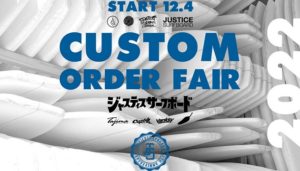 2022年のジャスティスオーダーフェアが2021.12.04からスタート! 春から暖かくなる季節にむけてNEWボードを是非!! フェア期間:2021年12月4日~2021年2月28日 &nbs … 続きを読む 2022 JUSTICEサーフボードオーダーフェアは今月末まで!